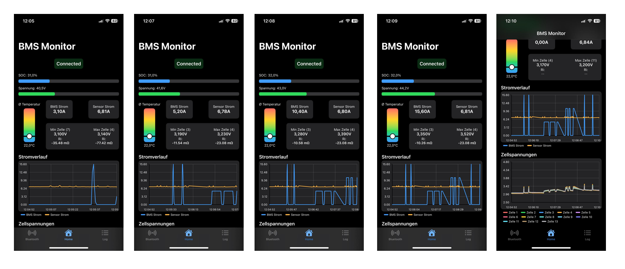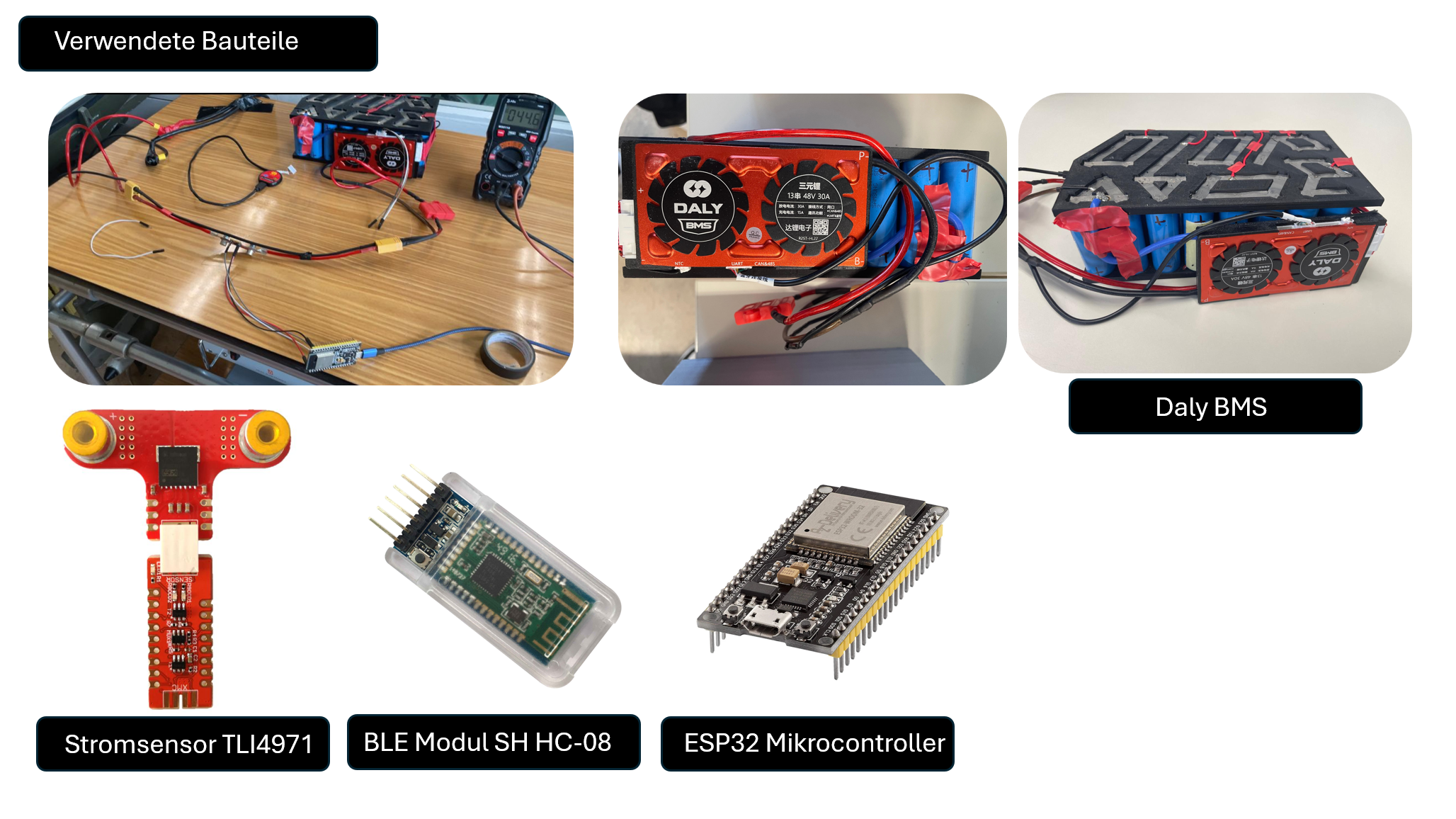 - Live-Auslesen von Zellspannungen, Temperaturen und Ladezustand über den ESP32